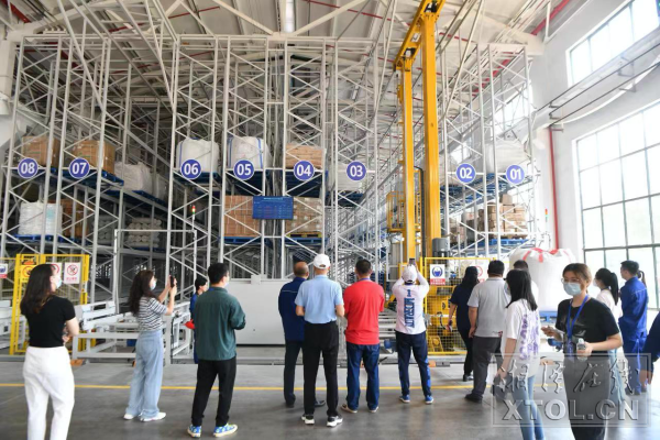 媒体记者和网友代表参观华菱线缆立体智能仓库。(记者 罗韬 摄)