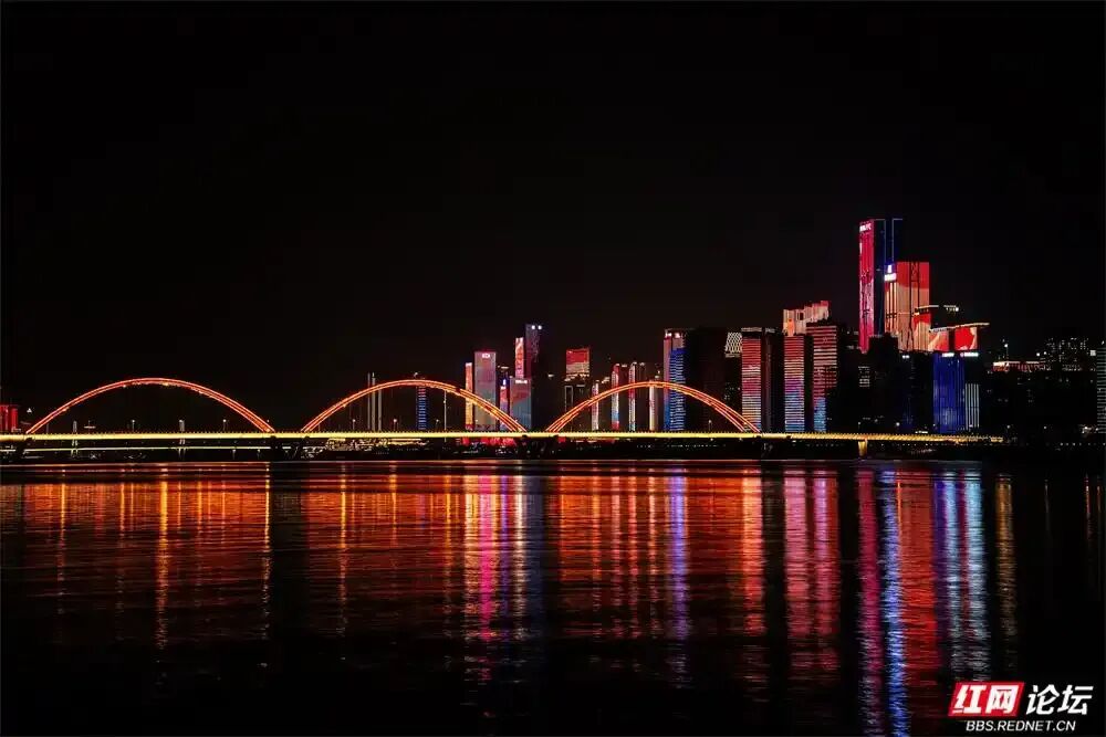 ▲长沙湘江两岸璀璨的灯光。(许志国/摄)