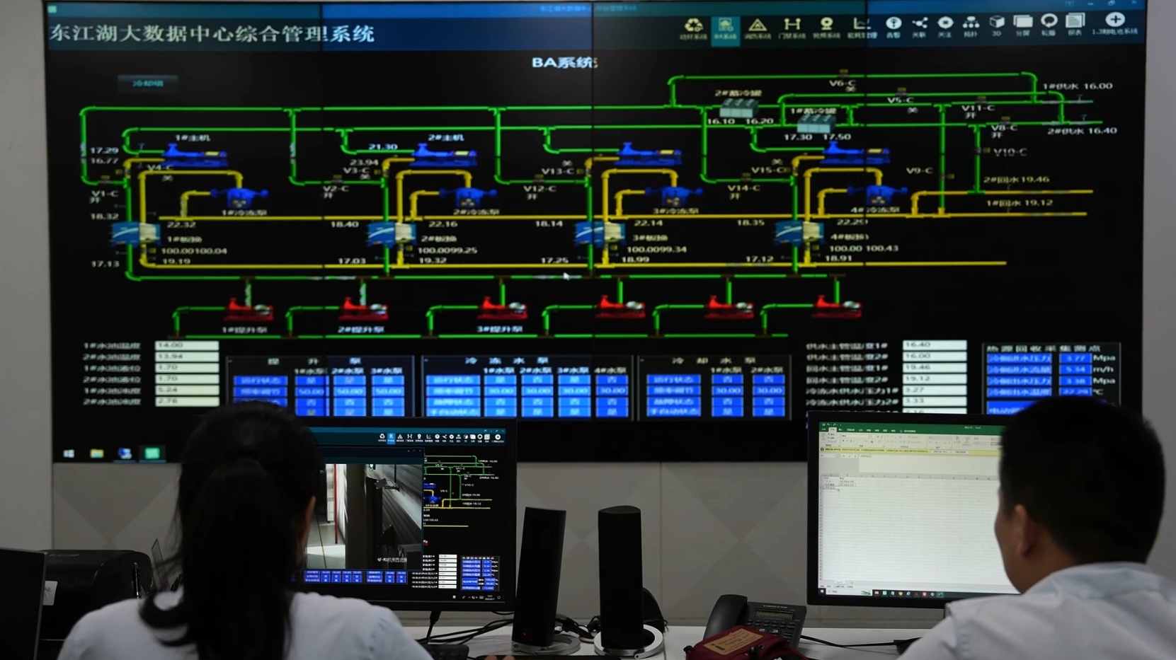 在占地30亩的湖南云巢信息科技有限公司,没有传统数据中心的“空调机森林”,取而代之的是与东江湖直接相连的全自然冷却系统。湖水经管道引入后,通过板式换热器持续不断给机架洗“冷水澡”,让服务器运行更加安全平稳的同时,也不用再为“高能耗”发愁。