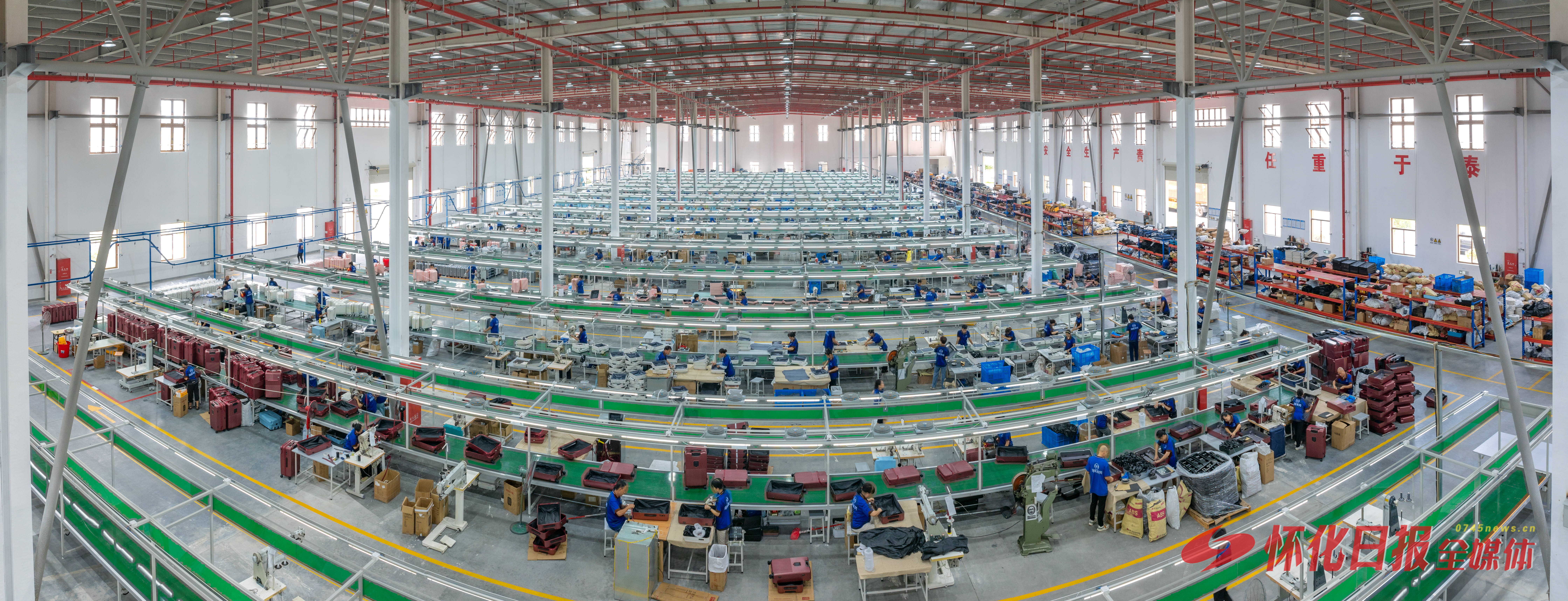 会同县拉杆箱包产业集群生产车间一角。(怀化日报全媒体记者 田敏 通讯员 张镭 摄)
