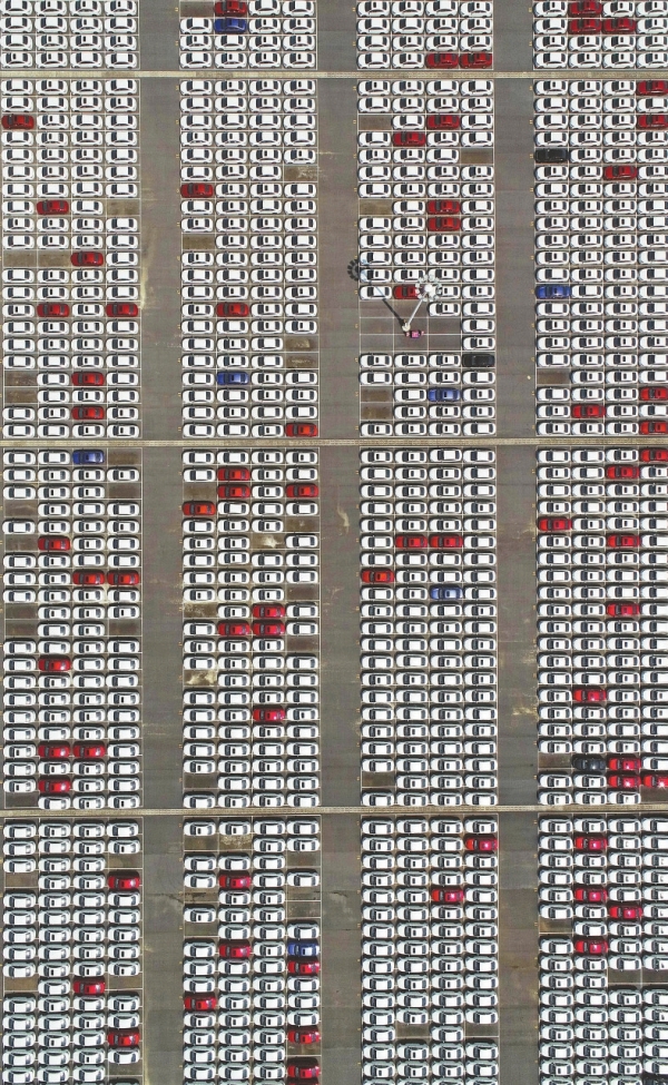 俯瞰北京汽车股份有限公司株洲分公司成品车停放区。(资料图片)湖南日报全媒体记者李健摄